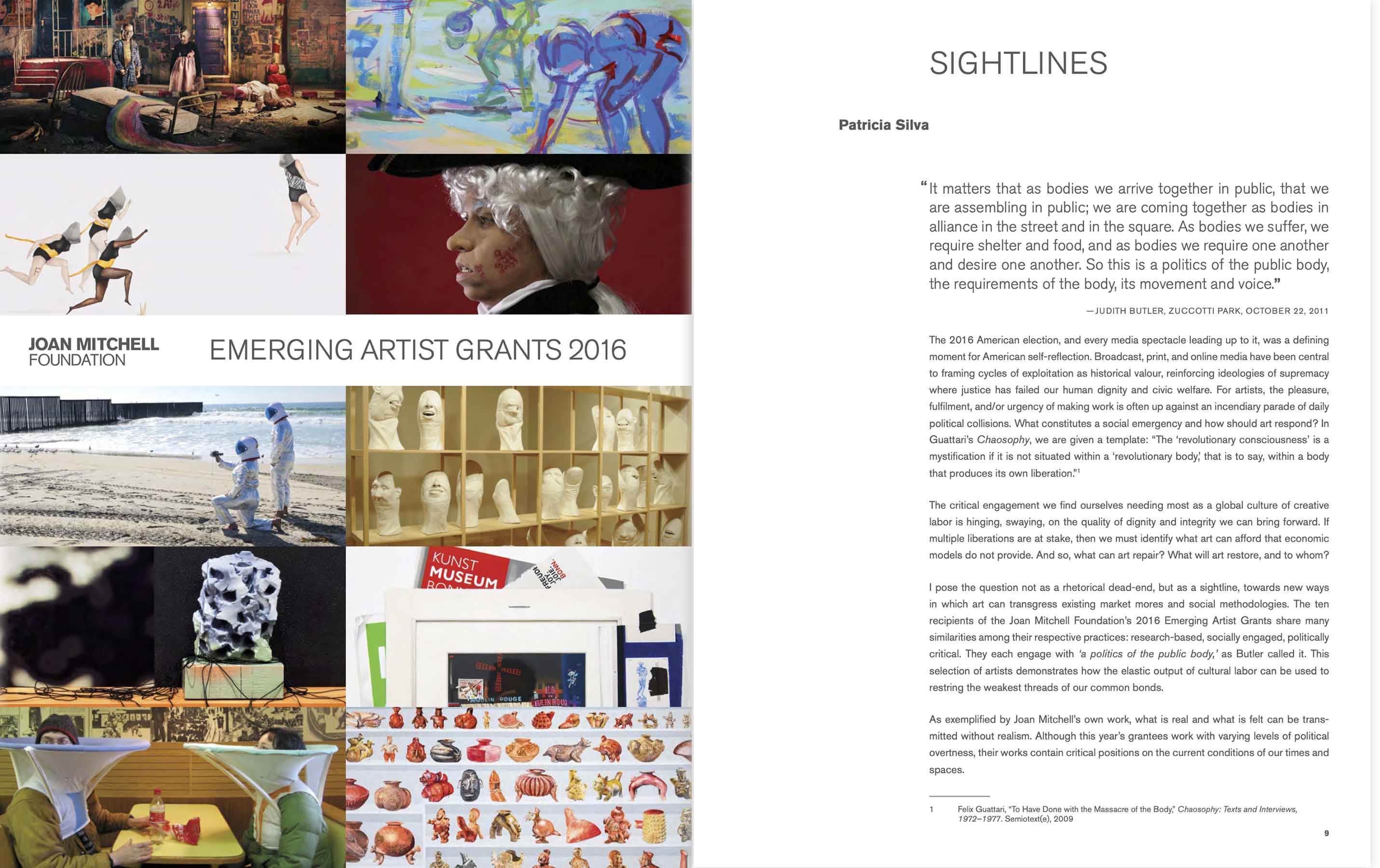 "Sightlines" Emerging Artists Grants 2016 Published by The Joan Mitchell Foundation, New York, USA, 2018